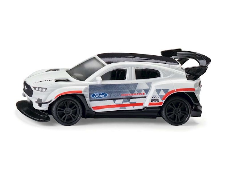 3, 2, 1, GO! Der E-Mustang schiesst mühelos auf Höchstgeschwindigkeit und hat die Konkurrenz im Nu abgehängt. Sportliche Felgen mit gummierten Reifen bieten auch in engen Kurven optimalen Grip. Die Metall-Karosserie des Rennwagens besticht zudem mit hammer-coolem Racing-Design und aufwendiger Bedruckung: strahlend weiss mit mehrfarbigen Farb- und Logo-Akzenten – dazu noch die biestig aussehenden, schwarzen Felgen… Ein Traum für alle Fans der legendären Amerikaner.