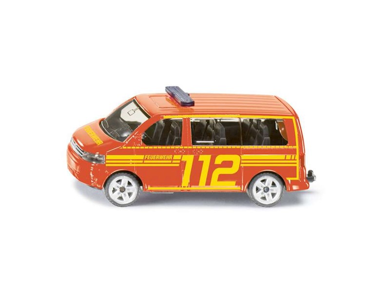 Detailgetreues Spielzeugmodell des VW T5 Feuerwehr-Einsatzleitwagens mit neuer Bedruckung – perfekt zum Spielen und Sammeln für Feuerwehr-Fans jeden Alters. Das robuste Modell punktet mit einer stabilen Metallkarosserie und gummierten Reifen für hervorragende Rolleigenschaften. Die Heckklappe ist zu öffnen, und eine Anhängerkupplung ermöglicht spannende Kombinationen mit weiteren Anhängern im gleichen Massstab.
